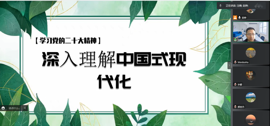 12月9日下午,开云kaiyun登录入口多媒体所党支部及媒体计算实验室研究生党支部联合开展“学习贯彻党的二十大精神”主题学习活动。开云kaiyun登录入口(人工智能学院)院长汪萌出席活动,并作题为“学习党的二十大精神——深入理解中国式现代化”的宣讲报告暨专题党课。