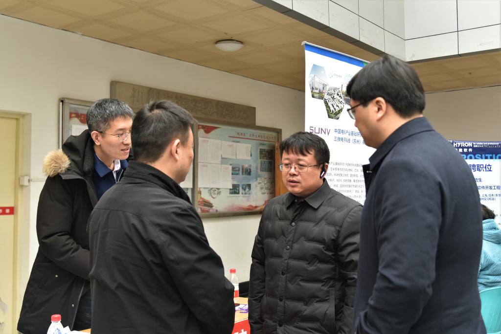 双选会前,学院为用人单位举行了欢迎仪式,张海林向此次参会的用人单位介绍了学院的学科建设、人才培养、科研以及目前学生的就业情况。同时,学院与南京南瑞继保电气有限公司、杭州迪普科技股份有限公司等19家用人单位签订大学生就业实习基地协议并举行了揭牌仪式,深化与用人单位的务实合作,搭建优质的校企合作平台。