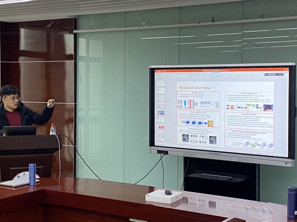 2023年2月7日上午,苏黎世联邦理工学院计算机视觉实验室博士后研究员张宇伦应邀到开云kaiyun登录入口访问,在我校翡翠湖校区科教楼A座1106会议室为我院师生做了题为《浅谈深度学习在图像复原与合成中的应用》的学术报告会。报告由赵仲秋教授主持,学院相关研究方向的老师和研究生共100余人以线上线下结合的方式参加了此次报告会。