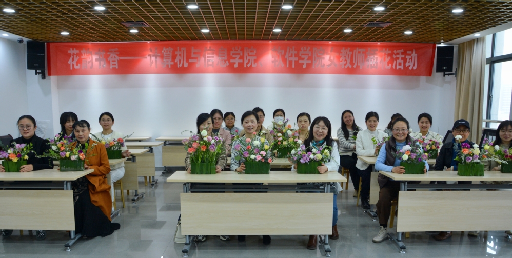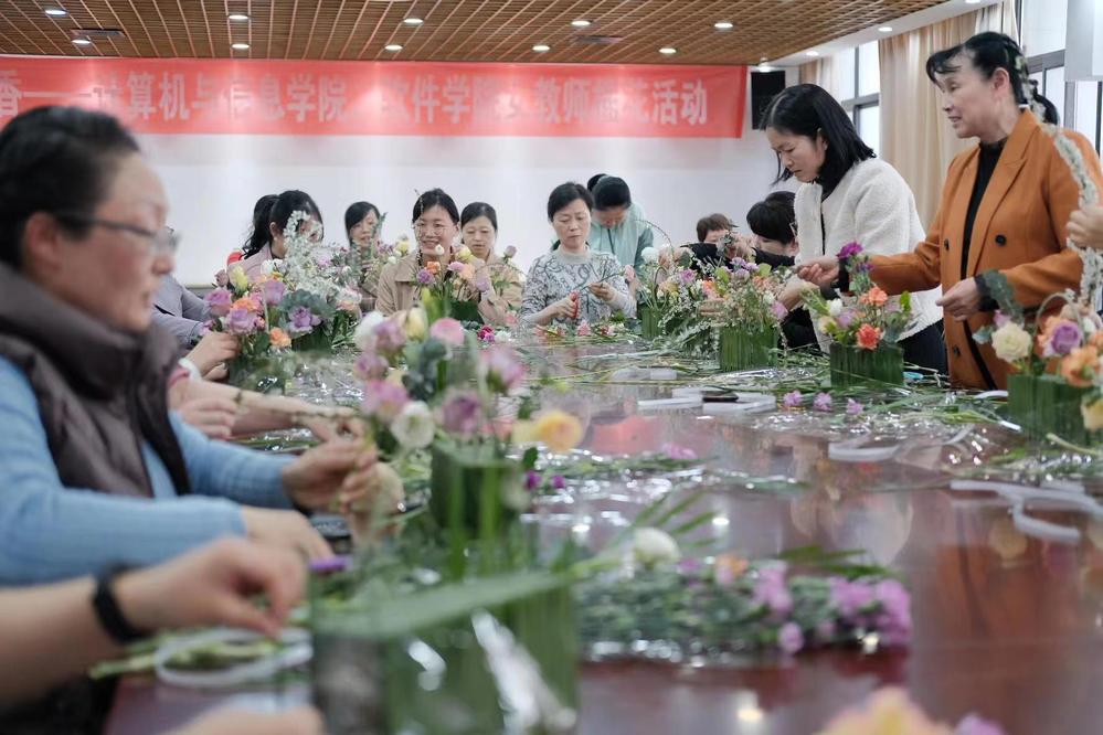 3月15日下午,在翡翠科教楼A706组织了“花韵书香”插花艺术体验活动,学院42名女教师参加。花艺师向女教师们介绍了各种花卉所蕴含的花语和祝福,普及了插花的基础知识和注意事项。经过培训,老师们依据自己的构思修剪好花材料、设计装饰作品。现场氛围活跃,充满诗情画意。