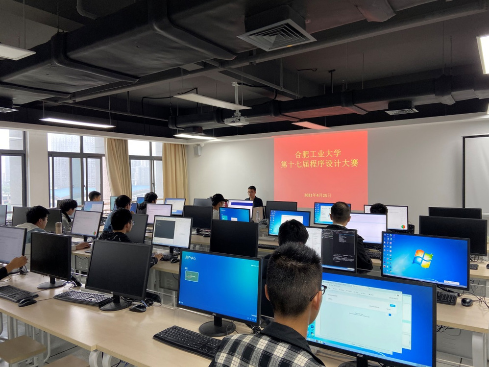 2021年4月25日下午,由校创新创业教育中心、开云kaiyun登录入口(人工智能学院)、软件学院和开云kaiyun登录入口CCF学生分会共同主办的第17届程序设计竞赛通过在翡翠湖校区机房成功举办。本次比赛,面向全校2019级和2020级本科生,共有来自6个学院10个专业的100余名同学报名参加。经过网络赛选拔,其中约60名同学参加了当天的现场赛。