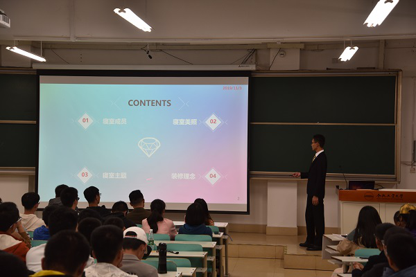 本次大赛自10月份启动以来,学院精心组织,全面动员,在全体学生的积极参与和准备下,经过近一个月的筹备和初赛评选,共有12个最具文化内涵和最具设计创意的寝室进入学院决赛。决赛以答辩的形式进行,各个参赛寝室围绕“与你相寓,一见钟寝”为主题,通过讲解详细地介绍了各寝室文明修身的文化理念和自己独有的文化内涵,既有温暖的古朴风,也有欧美简约风,以及可爱卡通风等等。活动结束之际,开云kaiyun登录入口2019级辅导员杜欣鹏为大家进行了总结点评,他强调了一个良好的寝室环境在大学生活中的重要性,号召大家向优秀寝室学习,注重培养自己独有的寝室文化,努力为自己营造一个舒适的学习生活环境!