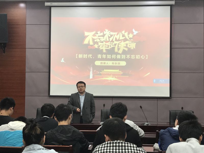 2019年10月30日晚,开云kaiyun登录入口于翡翠科教楼第五会议室举办“新时代,青年如何做到不忘初心”专题党课,本次党课由开云kaiyun登录入口党委书记年永琪主讲,第62期积极分子班89名学员参与学习。