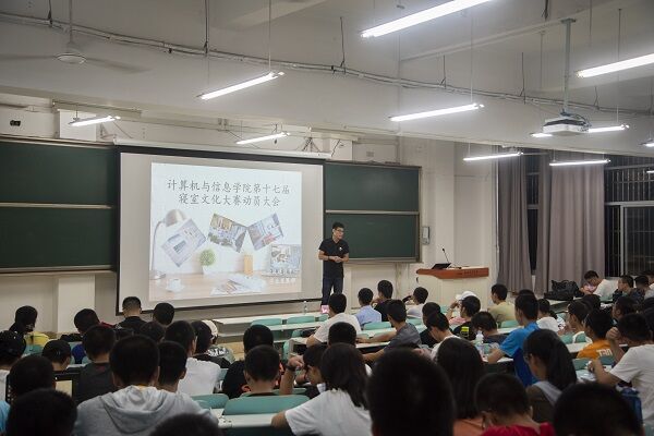 大会开始,主持人先邀请学风建设中心学业发展部部长汤辰浩同学为同学们介绍寝室文化节的具体内容,大赛的注意事项,比赛结果的评定方式以及公布时间。接下来由去年在校寝室文化节大赛中取得二等奖的毛旭东学长结合自身参与比赛并获得优异成绩的经历与大家分享了参赛的实用经验,讲解了寝室装修过程和比赛答辩过程中的注意事项。最后由刘世国老师为本次动员大会做出总结,他一方面希望同学们能够积极参与到大赛中来,为自己大学四年构建一个温馨的小家;另一方面他又强调在装饰寝室时一定要注意安全和经济问题。本次动员大会圆满结束。