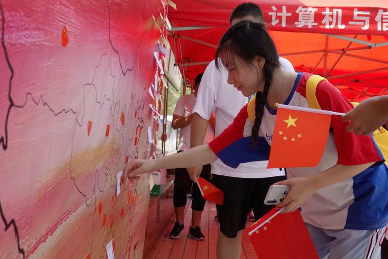 9月30日中午,开云kaiyun登录入口在翡翠湖校区第一食堂广场举办“执笔告白我的国,青春同框新时代”迎国庆特别活动,工大师生积极参与,在便利贴上写下对祖国的祝福和对美好未来的期待之情张贴在地图展板上,并合影留念。
