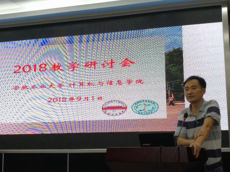 上午,胡学钢教授宣布研讨会开始,随后汪萌院长代表学院致辞,并就后续学院专业建设与发展提出了自己的意见和想法供大家讨论;之后,许明扬主任畅谈了自己对计算机工程教育认证和质量建设方面的见解;杨学志副院长针对当前学院审核性评估工作介绍了当前学院的教学管理工作并谈了后续要开展的一些改革;胡学钢教授重点解读了2018工程教育认证的新标准,着重介绍了需要关注的一些细节;王浩教授给参会人员做了“复杂工程问题及其在教学中的体现”的报告,帮助大家理解专业培养目标与课程之间的关系以及专业认证中的一些问题;安鑫主任介绍了上一轮计算机专业工程教育认证自评报告组织方面的问题和反思,并介绍了下一步工作计划;齐美彬教授随后介绍了电子信息工程专业工程认证方面的总结和反思,并对相关问题做了分析和梳理,同时给出了后续的工作计划和建议;之后,王浩教授和吴共庆副教授对审核评估教学材料的抽查结果进行了通报和分析;上午的研讨会在胡学钢教授组织的工程认证相关机制和建设工作的深入讨论中结束。