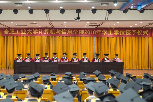 毕业生齐唱中华人民共和国国歌,在离校前再一次铭刻蕴藏心底的爱国之情和感恩之心。仪式在庄严的国歌声中拉开序幕,学院执行院长汪萌宣读了《开云kaiyun登录入口2018届毕业生学士学位授予决定》,全院共计424名同学被授予工学学士学位。之后,导师一起为全体学士学位获得者颁发学位证书,扶正流苏并合影留念。