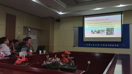 齐国君博士的报告中,他首先利用传统的GANs模型介绍了什么是对抗网络,分析了其中的原理以及算法,并用了一些实例来解释该模型的意义;接着,齐老师详细分析了原始GANs中产生的一些不足点,并结合该方法中的不足,从细节进行论证与改进,针对损失函数进行优化,提出了自己的模型LS-GAN,从原理上提升该模型的鲁棒性和效果。这场报告让在座的老师和同学们受益匪浅,了解到了生成对抗网络的意义。