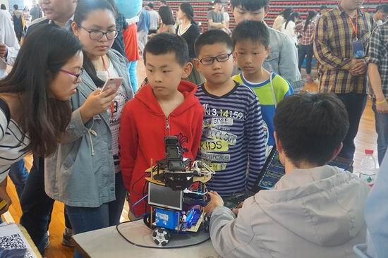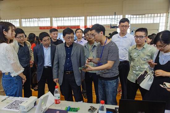 本次开幕式现场共有近600人次参观,现场展示科技作品35余项,其中最为特色的展品为非接触式视频心率监测,它采用普遍的摄影工具实现人体心率检测,吸引了参观者的注意,展品前人头攒动。另外还有基于UWB的变电站作业安全监测系统;主要面向儿童教育领域的情感交互机器人,旨在对儿童进行知识教育,并对其情商进行引导和提高;观赏性强的舞蹈机器人;可以进行偏振光导航的无人机;基于模型的假目标干扰FPGA设计实现……30余项高科技展品的纷纷亮相,使得在场师生零距离感受科技魅力,吸引了不少市民前来“围观”。本次科技节还邀请了翡翠小学的师生们共同参观科技展品,体验高科技,大手拉小手,共筑科技梦 。