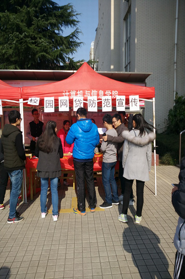 开展“校园网贷”防范教育宣传活动。2016年12月4日上午,学院团委在翡翠湖校区一食堂广场组织开展“校园网贷”防范宣传活动,活动取得良好效果。活动现场气氛活跃,路过的同学们踊跃参加,并在宣传横幅上郑重签下自己的姓名。这些举动无一不体现出同学们对自身权益保障的重视,和拒绝校园网贷的决心。
