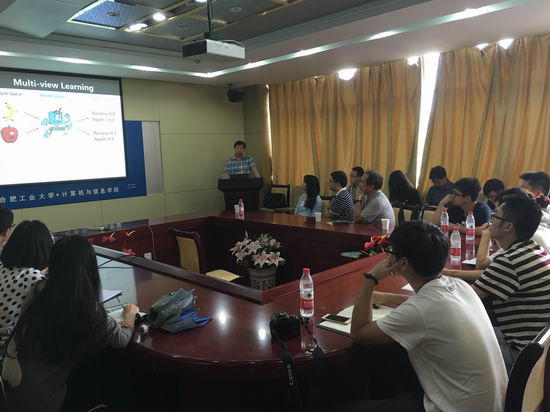 陶大程教授首先介绍了多视角学习的基本概念和相关应用背景,并指出多视角学习具有高度的灵活性和普适性,“视角”这一概念在不同应用中均可根据当前情境来具体化,进而可以衍生出近百种具体方法。陶教授进而在理论的层面对多视角学习问题加以重新解读,并提出了一种“多视角完备空间学习”的新思路。最后,陶教授畅谈了多视角学习的发展趋势和研究挑战。报告会引起了在座师生的极大兴趣,大家纷纷就自己感兴趣的话题,与陶教授开展了热烈的讨论。