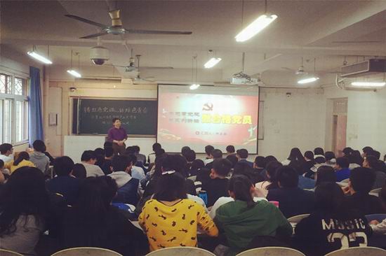 为了深入贯彻落实党中央和学校党委关于党员再教育的文件精神,深入内化“两学一做”具体要求,充分发挥毕业生党员的先锋模范作用,4月21日下午,开云kaiyun登录入口在屯溪路校区西二教105室举行“铸红色党魂,话绿色青春”毕业生党员活动月开幕式暨毕业生党员“两学一做”专题报告会,2012级全体党员参与了此次活动。