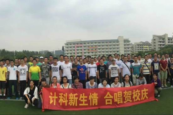 9月25日,开云kaiyun登录入口15级新生在翡翠湖校区西操场上举行了“计科新生情,合唱贺校庆”的合唱校歌活动。计算机科学与技术专业三个班全体同学均参加了这次活动。