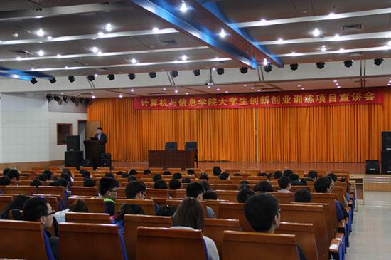 4月12日晚,开云kaiyun登录入口大学生创新创业训练项目宣讲会在翡翠湖校区图书馆报告厅顺利举行。学院各系所及实验中心负责人、研究生代表、高年级本科生代表出席宣讲会,学院2013级全体学生和2014级“英才计划”计算机与信息类本硕连读创新实验班学生参加会议。宣讲会由学院实验中心主任、电子创新基地负责人杨兴明副教授主持。