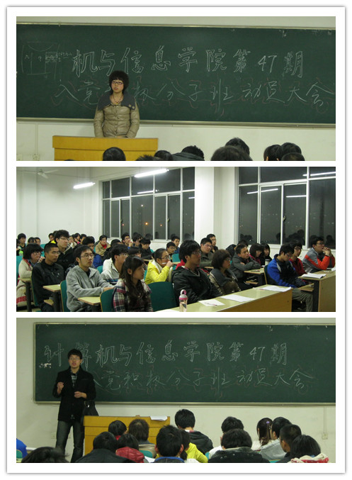 在党校第47期大学生学员班培训工作即将开始之际,开云kaiyun登录入口于3月24日晚19:00在翡翠湖校区12教203举行开云kaiyun登录入口第47期入党积极分子班动员大会,开云kaiyun登录入口2011级辅导员陈方鑫老师、50名加入入党积极分子班的同学以及已毕业于第46期入党积极分子班的赵嘉敏同学参加了此次大会。