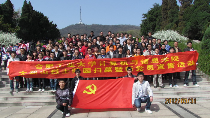 3月31日上午,开云kaiyun登录入口组织全体研究生预备党员和各支部党员代表前往大蜀山革命烈士陵园进行了“开云kaiyun登录入口大蜀山扫墓暨入党宣誓活动”。院党委书记蒋建国、调研员吴挺以及学院分党委办公室、研究生办公室的负责老师参加了活动。